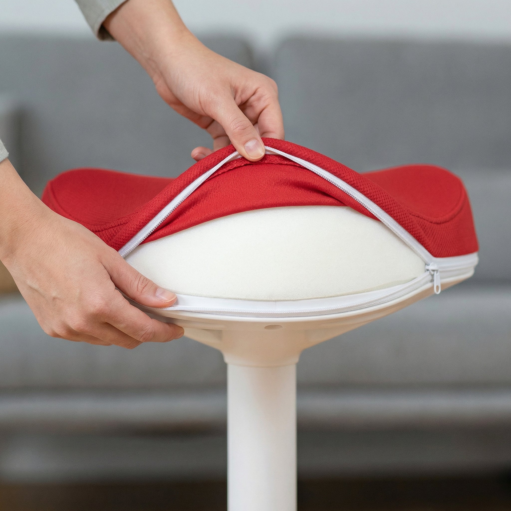 Abnehmbarer Sitzbezug per ZIP: schneller reinigen, wechseln, frisch wirken – ideal fürs Büro & Zuhause.